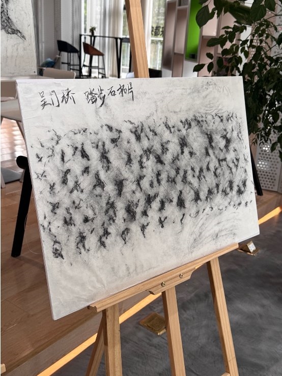 此次展览还采用了炭笔拓画的形式,将古桥上有代表性的浮雕、千斤石、踏步石的纹样复制到了展览现场。府署桥的24只南宋石狮子,有些活灵活现,有些则因年代久远风化严重而难以辨识。吴门桥上的踏步石拓片,初看像当今流行的菱格图形,实则是千年前匠人们为了防滑专门凿刻的,如今的图案是经过千年步履摩擦和风水日晒之后形成的生活印记。