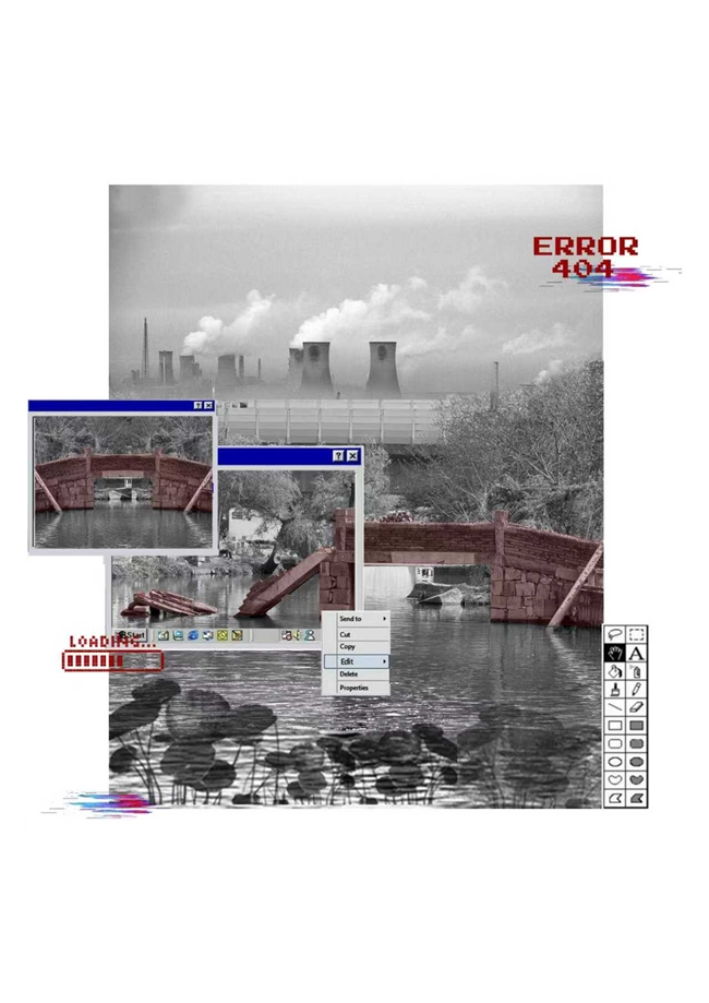 展览的最后,卢荻以一幅艺术创作,表达了对古桥保护的倡议。“我从小生活的工业园区附近有一大片绿地,我们经常在那玩,绿地上残存两座双拱石桥,非常有韵味。但这些古桥面临着城市化改造而消失的风险。我也发现,即便是在山塘街这样的繁华地带,北段的野芳浜也有一座桥已经有断裂,废弃在水中。这些古桥是这座城市最独特的财富,”卢荻说,“我策展的最终目的,不仅是展示它们的美,更是希望通过我的视角,连接起更多人的关注。让我们在走向未来时,不要遗忘这些连接了我们过去与现在的文明坐标。”